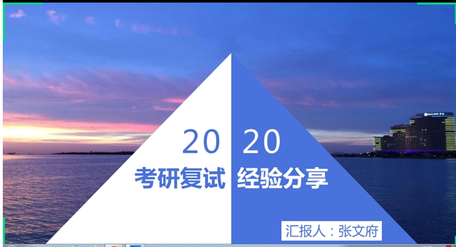 随着考研成绩的公布,在疫情防控的特殊时期,考研同学也进入了复试备考的关键时期,为帮助考研学生理清思路,找准方向,顺利通过复试,找到合适的导师。1946伟德国际源自英国于4月9日下午在腾讯会议平台线上召开“1946伟德国际源自英国2020届考研复试经验交流会”,此次交流会由李开朗主持,大连理工大学研究生学长张文府、天津大学研究生学姐郭亚杰、华东理工大学研究生学长汪辉林应邀分享考研复试的经验,2020届考研学生参加了此次交流会。