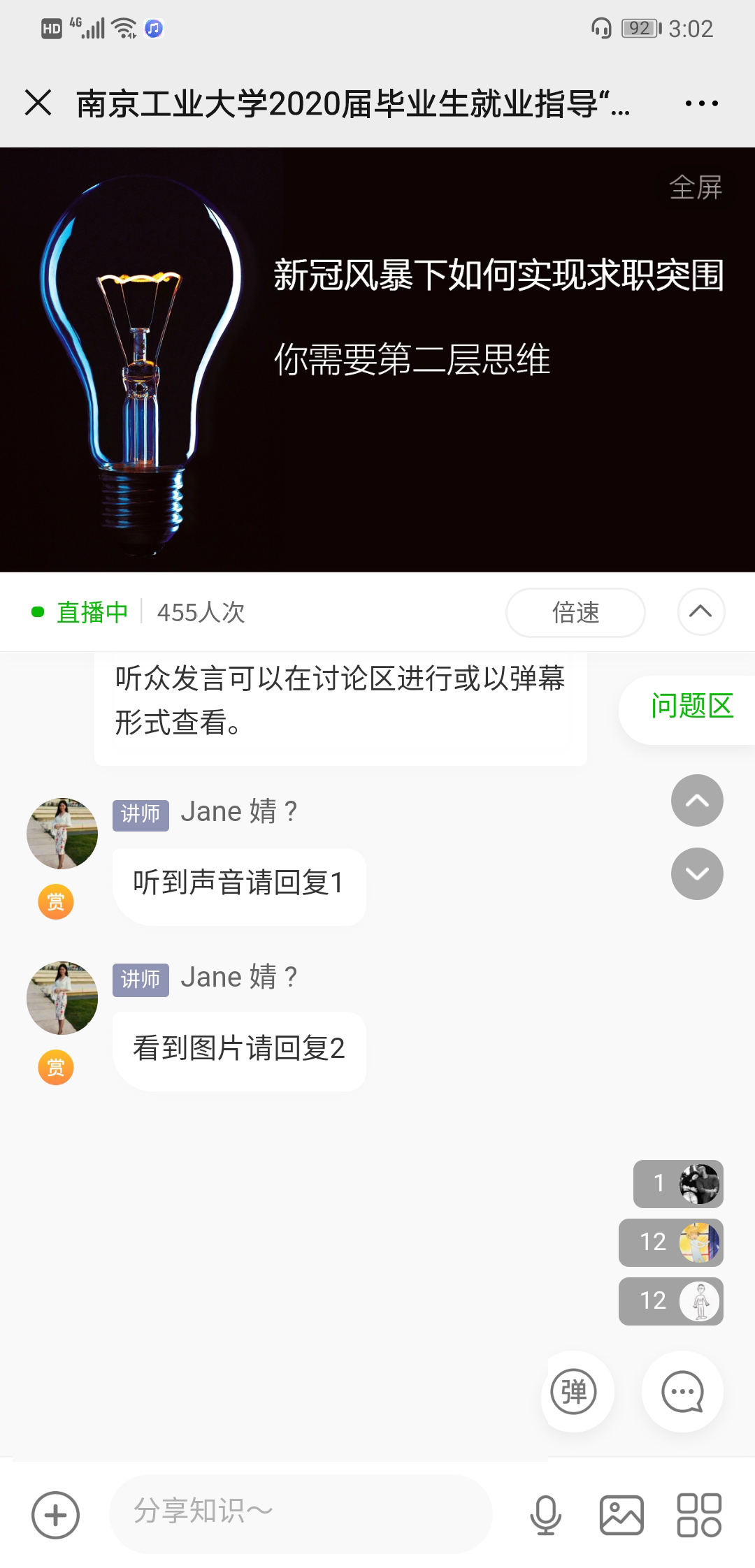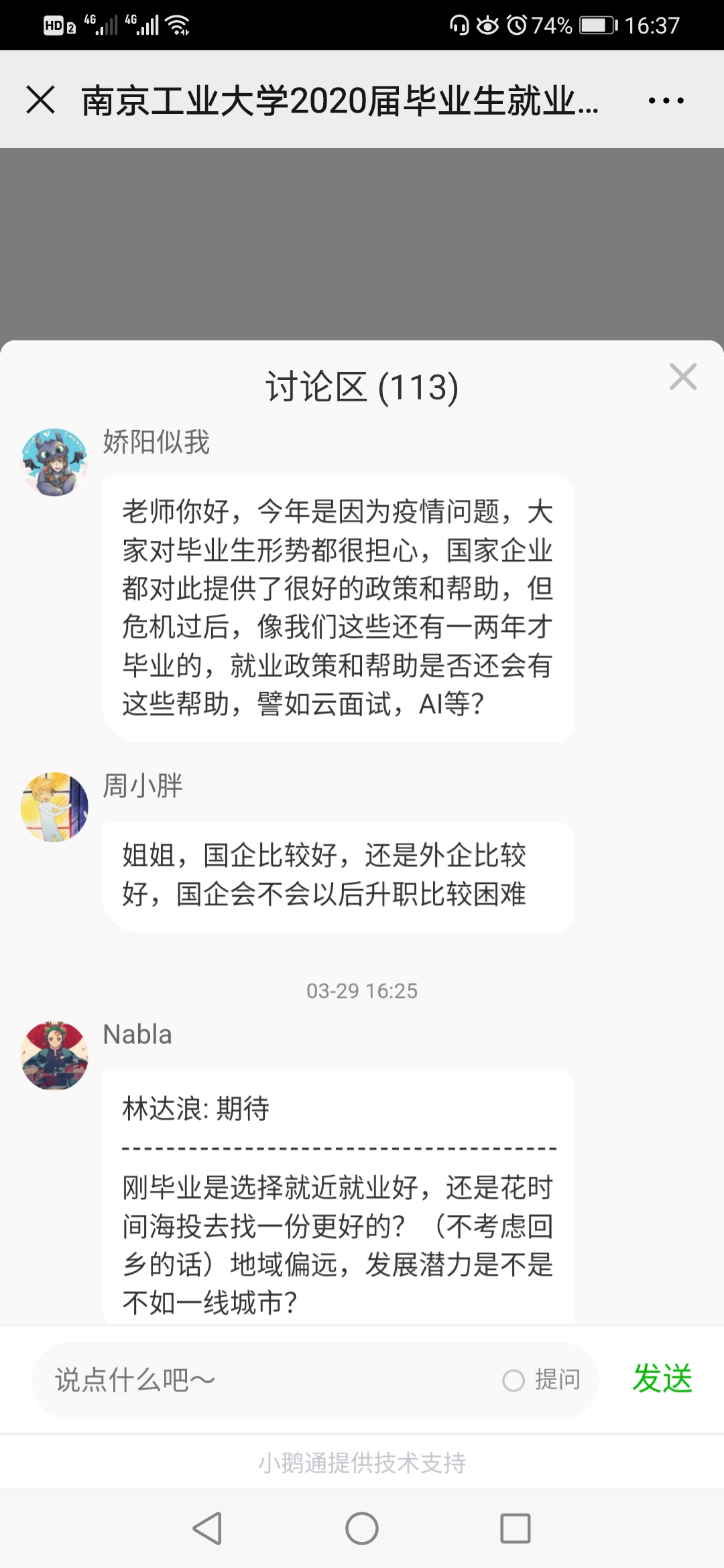 最后,钱经理与毕业生们进行了问答互动环节,针对毕业生的求职困惑进行了解答,同学们踊跃发言,纷纷就自己在求职过程中遇到的问题进行提问,钱经理耐心解答,气氛热烈。一个半小时的讲座内容丰富,案例生动,线上积极参与互动,讲座结束后同学们表示干货十足。