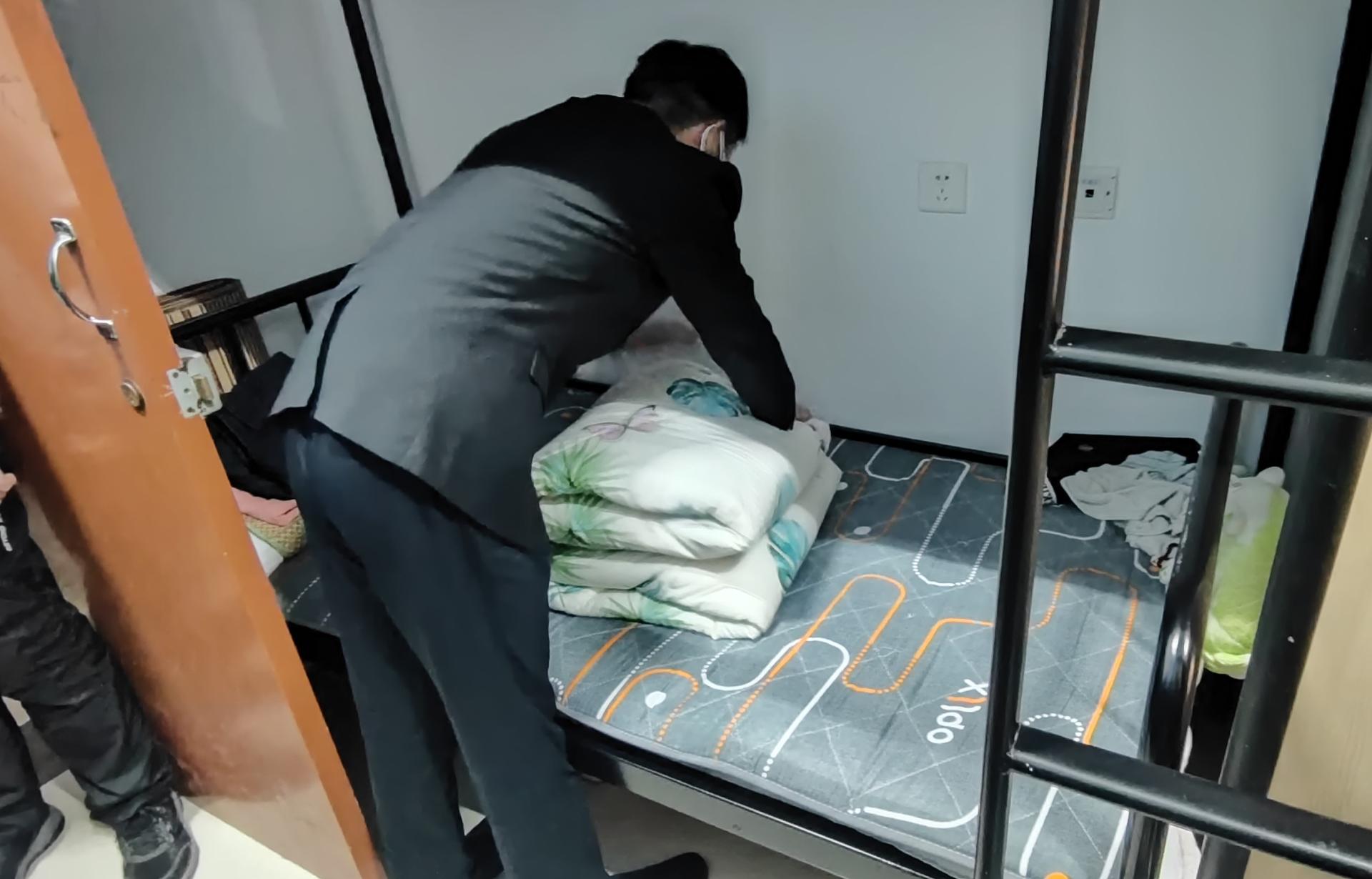 活动期间,充分发挥了学生党员的先锋模范作用,采用“包干到人”的形式,点对点安排学生党员深入新生宿舍,进行指导和帮扶。同时,还邀请了大学生退伍士兵化工1905班的莫枭飞同学深入宿舍进行示范演练。