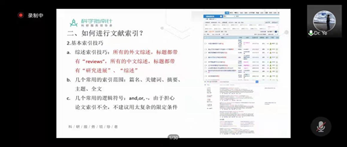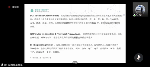 叶博士结合自身学术论文撰写与发表的经验,围绕SCI论文撰写、投稿与修改等方面进行详细介绍。讲座过程中他表示在准备SCI写作时,需大量调研相关文献,思考论文的意义和创新点以锁定研究主题,了解相关的搜索引擎、论文管理软件并掌握索引技巧、快速阅读技巧。