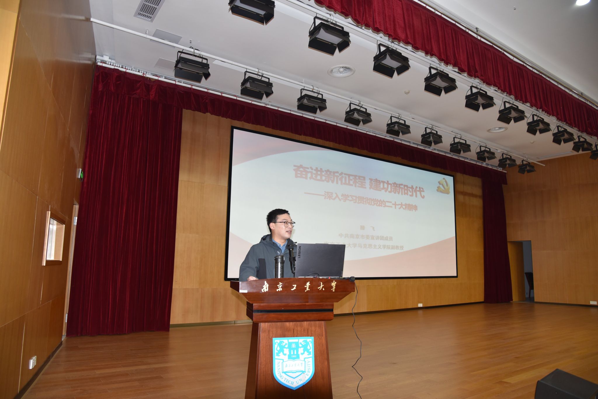 为落实学校关于学习党的二十大精神工作部署要求,3月8日下午,1946伟德国际源自英国邀请中共南京市委宣讲团成员、校马克思主义学院副教授滕飞老师在浦江报告厅以《奋进新征程 建功新时代—深入学习贯彻党的二十大精神》为题讲授专题党课,学院全体党员参加。