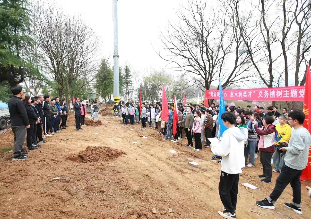 在后勤绿化指导老师带领下,参加植树的党员们一番辛勤劳动过后,500余株新栽的海棠树苗迎风挺立,稚嫩的枝丫未来将与比邻的梅花花海相映成趣,成为校园内新添的一道风景。