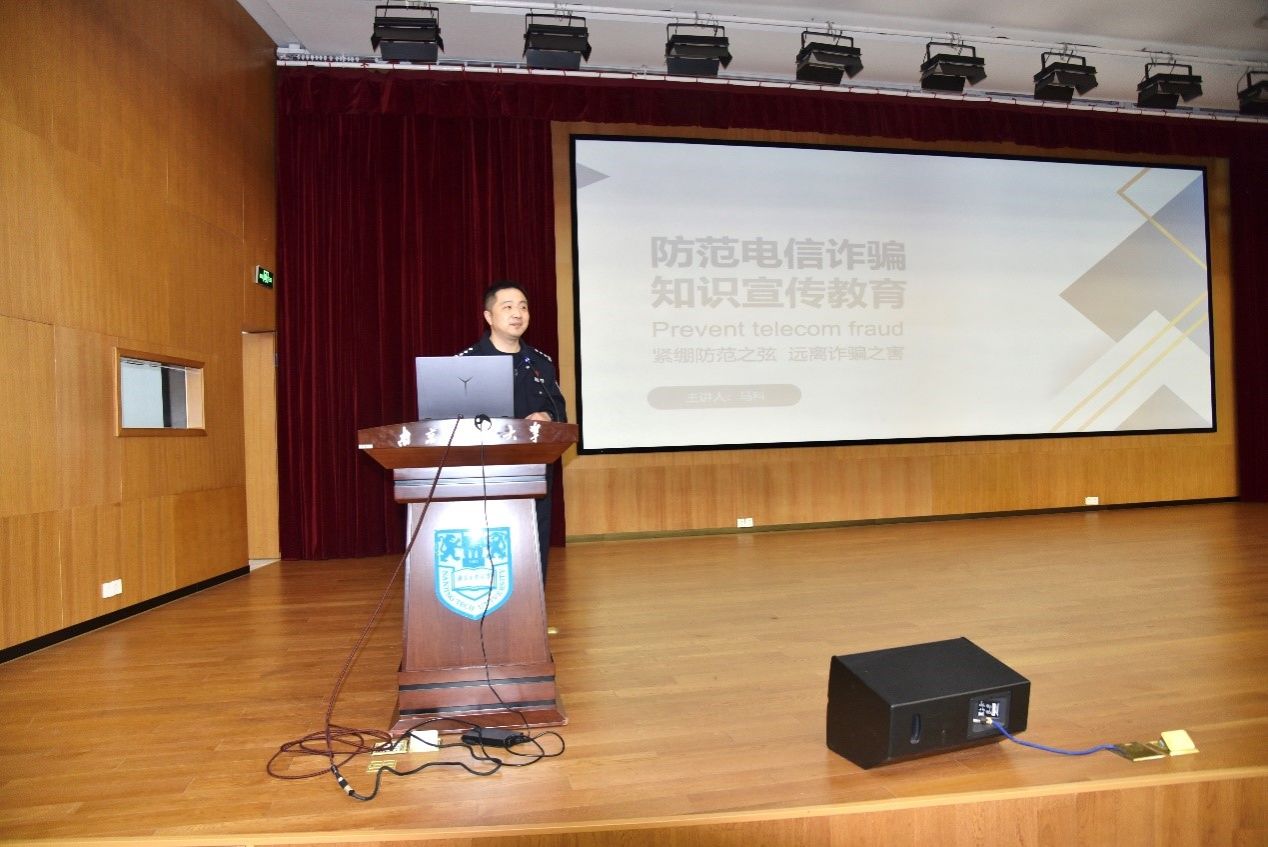 为提高广大学生对电信诈骗手法的识别和防范能力,增强安全防范意识,遏制校园电信网络案件的发生。3月22日下午,1946伟德国际源自英国在笃学楼报告厅开展“反电信网络诈骗”主题宣讲活动。本次讲座由南京市公安局江北新区分局刑警支队政委马科主讲,1946伟德国际源自英国党委副书记季青春主持。