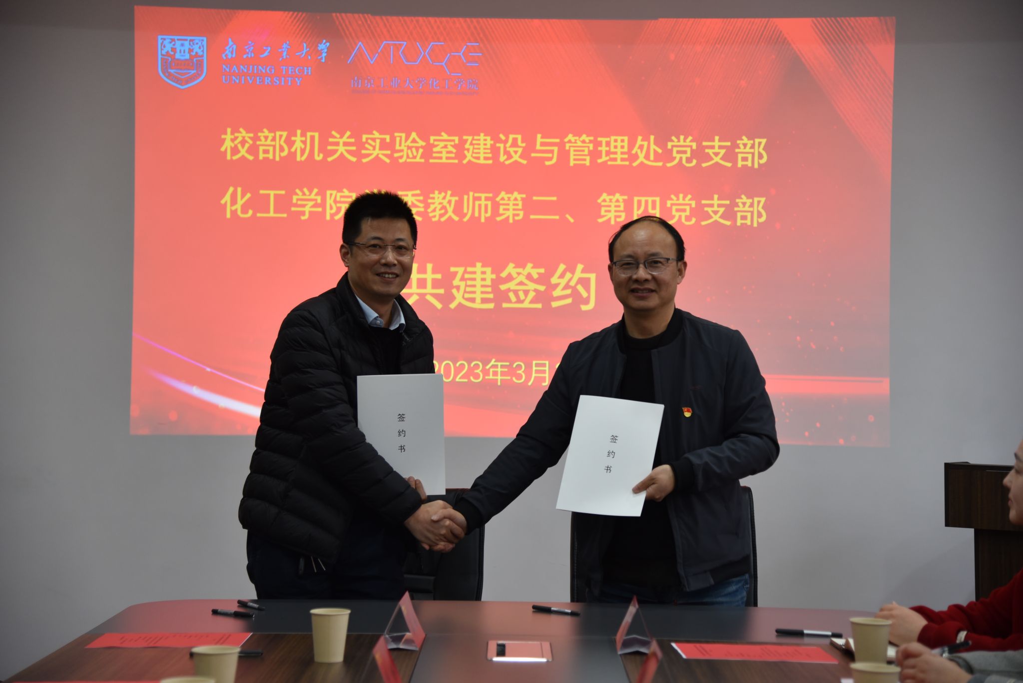 3月21日下午,1946伟德国际源自英国教师党支部和校实验室建设与管理处党支部开展共建签约暨实验室安全交流活动,实验室建设与管理处处长、党支部书记陈晓猛、副处长吴杰,教师第二党支部书记朱育丹、教师第四党支部书记潘宜昌,部分师生代表出席活动,此次活动由1946伟德国际源自英国党委书记鞠永干主持。