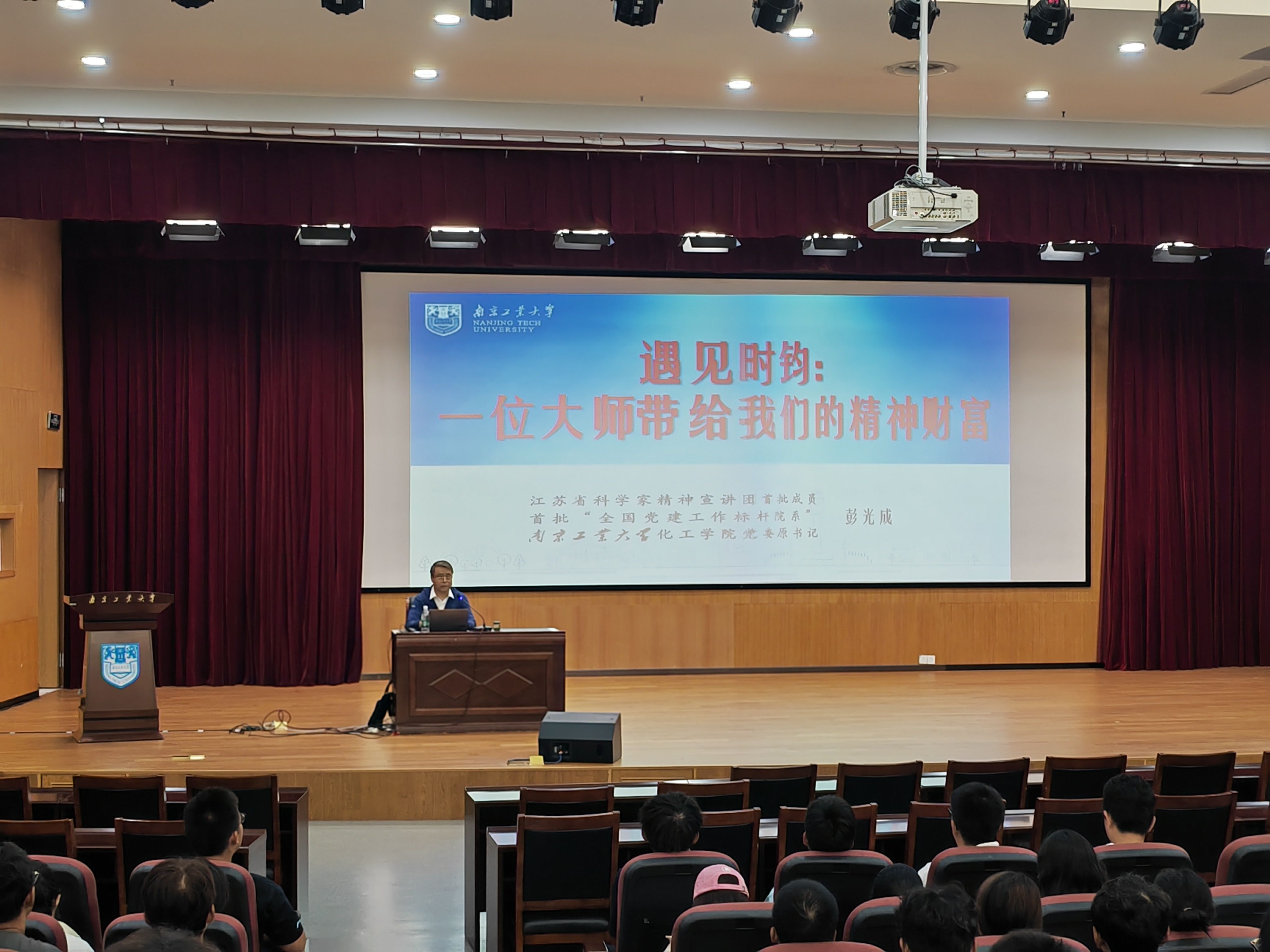 彭光成老师从时钧先生的求学生涯引入,讲述了时钧精神的内容和深刻内涵,并聚焦时钧先生忠党爱国,从先生两次人生重大抉择入手,讲述了他在不同历史时期为国家和民族作出的重要贡献,并对现场2025级新生提出要厚植家国情怀、养成良好品德、积极主动学习、争做时钧精神的传承者四点希望。报告会现场气氛热烈,同学们纷纷表示要深刻领会时钧精神的内涵,并以时钧精神为引领,努力学习专业知识,为化工行业和社会发展贡献属于“南工大化工人”的力量。