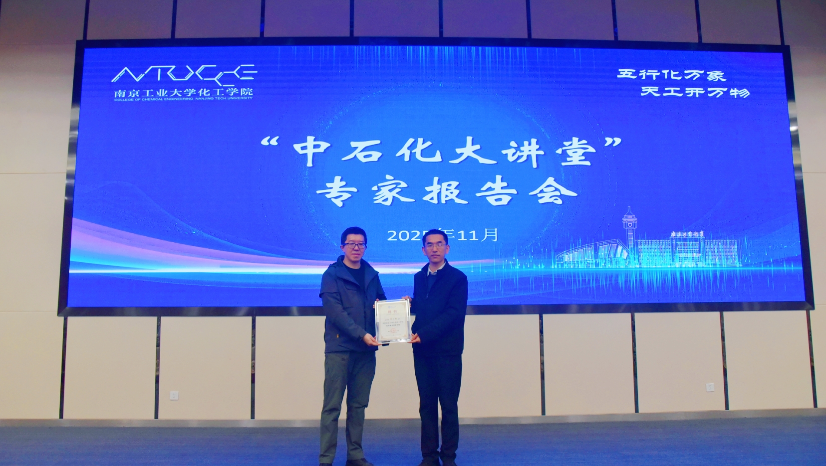 活动伊始,季青春代表学院对徐子栋主任的到来表示热烈欢迎,并为其颁发“校外就业创业导师”聘书。随后,徐子栋以《乙烯工业发展历程与工艺介绍》为题作专题报告,重点介绍了我国乙烯工业从起步探索到自主创新的关键历程,并结合自身二十余年的工程实践与管理经验,分享了对化工行业高质量发展的思考,勉励同学们脚踏实地夯实专业基础,在推动化工产业绿色转型与科技创新的征程中书写新时代青年的奋斗篇章。