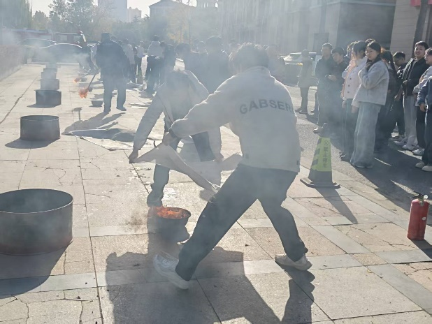 活动现场,校保卫处消防科张望老师结合校园及实验室火灾防控特点,通过“理论 + 实操”相结合的方式,重点演示了消防面具的正确佩戴流程、灭火毯覆盖火源的操作技巧,以及灭火器核心操作法。实操演练环节,同学们以小组为单位,依次参与灭火毯覆盖模拟火源、灭火器喷射灭火等实战操作。大家严格遵循操作规范,在亲手扑灭火源的过程中,不仅克服了对火的恐惧心理,更熟练掌握了消防器材的实操技能,真正做到 “懂原理、会操作、能应急”。
